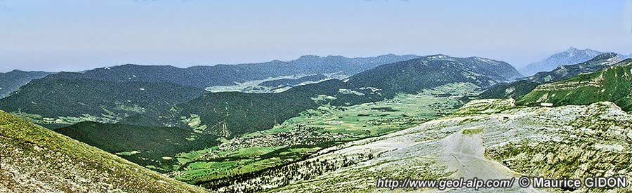 Vue d'ensemble du Val de Lans, du S-E (d'enfilade) depuis les pentes occidentales de la Petite Moucherolle (point 1836 de l'arête ouest). |