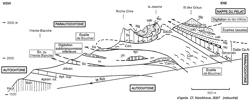 Coupe de la montagne du Pelat (d'après une figure inédite obligeamment communiquée par Cl. Kerckhove).