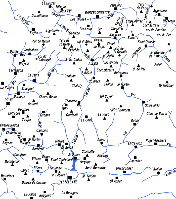 (N.B. : hors les secteurs d'Allos et de Barrême, de nombreuses localités ne portent pas de lien, leur page n'étant encore qu'en projet ...) |