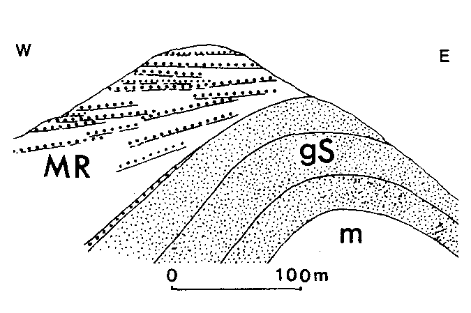 MR = Molasse Rouge ; gS = grès de Sénez ; m = marnes priaboniennes. |