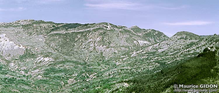 Le versant sud-ouest de la crête Chaudon - Saint-Martin vu de l'ouest, depuis Champagnel (en rive gauche de l'Asse) (détail agrandi du cliché ci-dessus)
