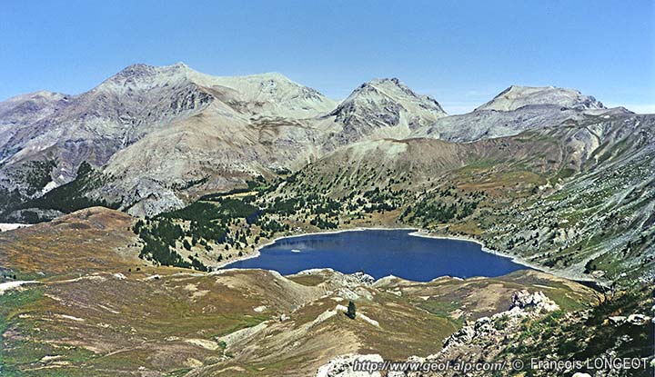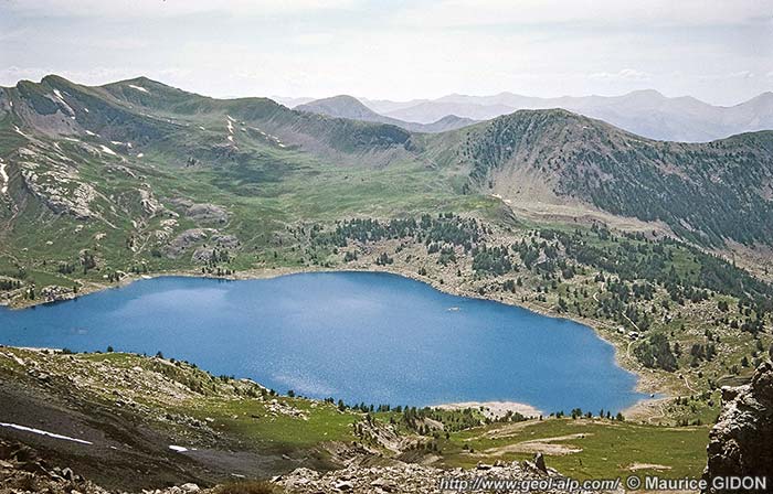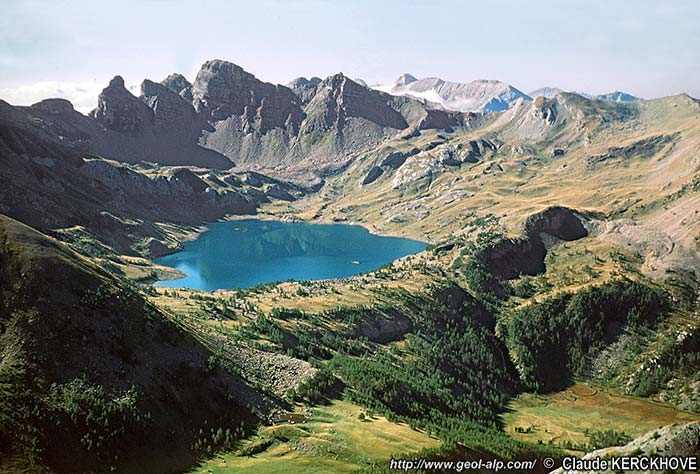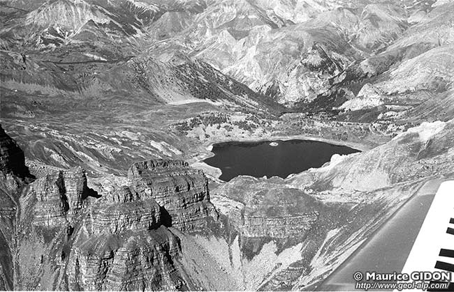 ![]() Le Lac d'Allos, vu de l'est, d'avion, par dessus la crête des Tours. |