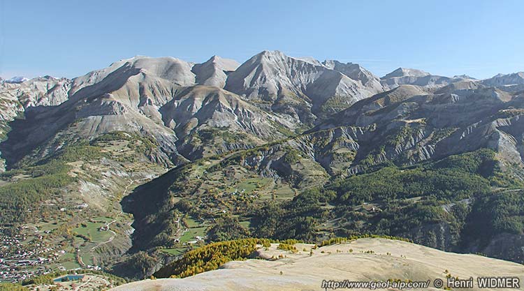 ![]() Le Mont Pelat et le lac d'Allos, vus du sud (cliché original obligeamment communiqué par M. Cl.Kerckhove) |