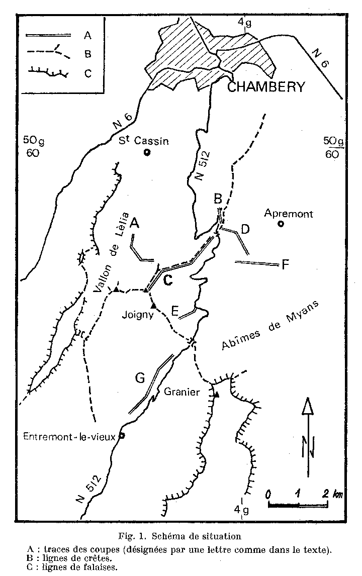 cur d'un pli-couché (carte Chambéry au 1/80 000e,