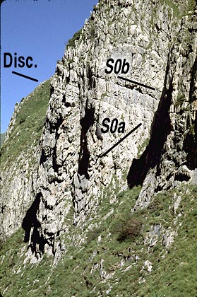 - un « Séquanien » formé de calcaires moins argileux, à litage plus fin (bancs de 20 à 40 cm), lui-même séparé de la falaise Tithonique, plus massive, par un niveau décamétrique à bancs plus petits et plus riches en joints marneux. Tout indique (notamment le texte de la lettre envoyée par P. LORY à G. CHERREY en accusé de réception du fossile récolté par ce dernier) que c'est ce dernier niveau qui a fourni à G. CHERREY, en 1947, un Progeronia (considéré alors comme un Procerites du Bathonien et conservé dans les collections de l'Institut Dolomieu).