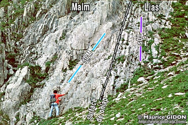 le coeur du pli sont en contact direct avec le Lias calcaire de