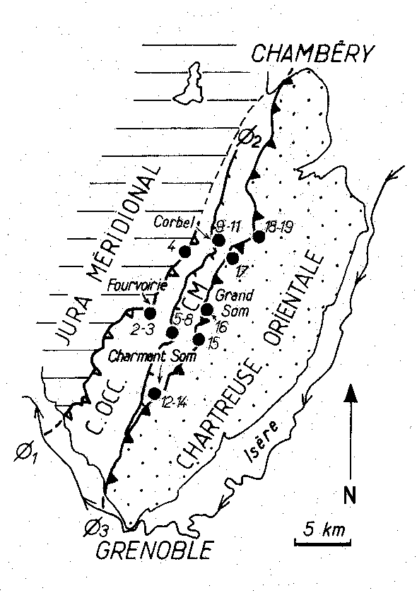 GIDON M. (1964a). Vues nouvelles sur la Géologie de la Chartreuse septentrionale et de l'extrémité sud des Bauges. Annales du centre d'Enseignement supérieur de Chambéry, t.2, p.7-25.