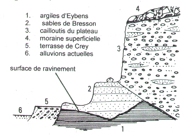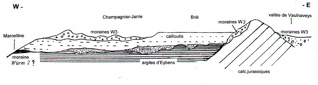 En revanche, ce qu'il y a au dessous d'eux est plus difficile à interpréter et à dater, à savoir les argiles d'Eybens. Pour comprendre leur position, il faut partir de la carrière d'Eybens (fig.1).