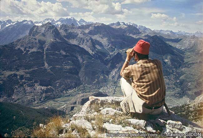 Le 21.08.1968, au sommet de Coste Rousse, scrutant le massif de Montbrison (Briançonnais méridional).
