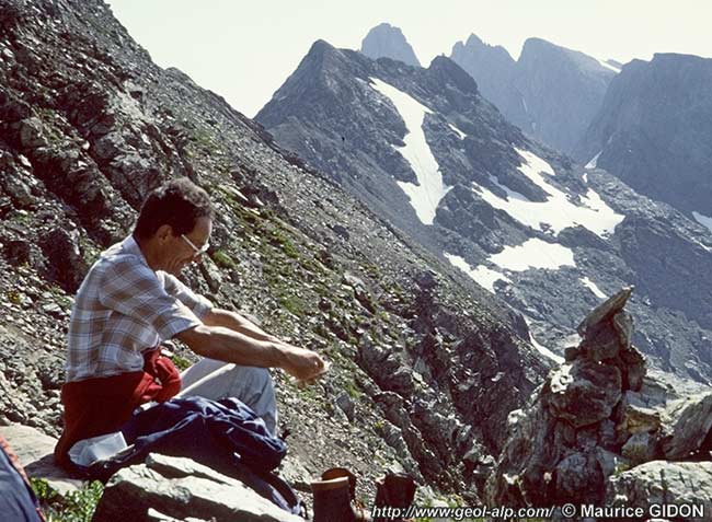 Le 21.08.1979, sur les mégabrèches du col du Vallon (massif de la Muzelle, Oisans).