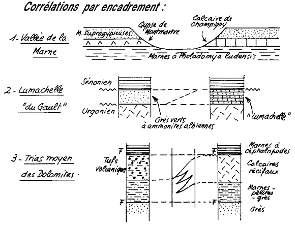 On verra plus loin que l'affinage de l'outil biostratigraphique a conduit à le considérer comme un élément de corrélation incomparable. Mais l'on ne peut pas toujours en disposer et il faut bien utiliser les outils lithostratigraphiques pour le compléter. Il faut donc mieux les connaître et savoir pourquoi ils sont, par contre, de valeur très inégale.