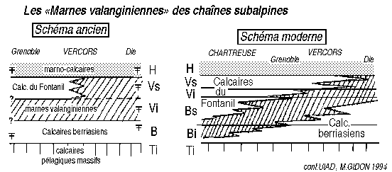 Nos ancètres stratigraphes (qui n'étaient pourtant pas plus bêtes que nous) parvinrent malgré cela à enrichir la science stratigraphique ; mais beaucoup ne la firent pas progresser véritablement car ils introduisirent ainsi dans le corpus des données classiques (utilisé comme bases de travail par les suivants) des confusions factuelles et conceptuelles tragiques (qu'il nous faut maintenant traquer et débusquer) Un aspect amusant est qu'ils aboutirent souvent aussi à devoir résoudre des problèmes créés ex nihilo par cet état de choses en ayant recours à des explications tectoniques aberrantes : citons, comme seul exemple, les plis couchés qu'imposait à J.Révil la répétition de niveaux calcaires, qualifiés de Valanginien sur la seule base de leur faciès type "Fontanil", dans le berriasien du soubassement du front des Bauges (Nivolet-Revard).