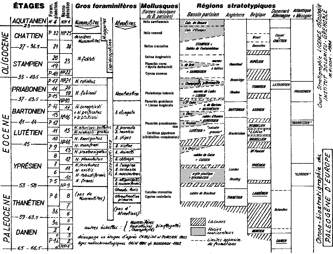 | Étages et âges "absolus" | Limitations et difficultés des datations chiffrées. Valeur des datations proposées. |