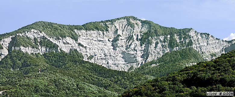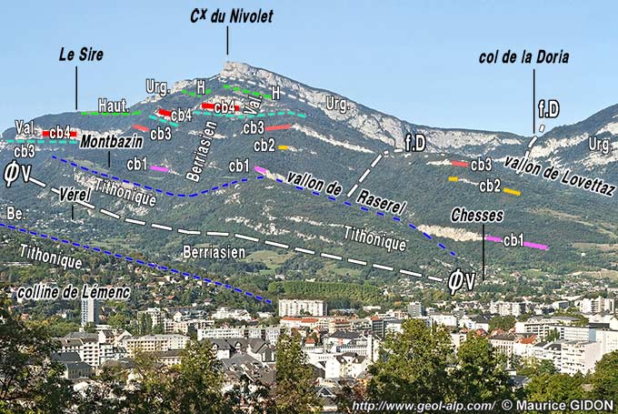 Au sud du Mont Revard le versant ouest du chaînon frontal des Bauges montre une belle coupe naturelle, qui tranche la pile de couches de la série stratigraphique jurassico - crétacée des Bauges. La succession du Berriasien-Valanginien y forme notamment les escarpements boisés du socle de la montagne du Nivolet.