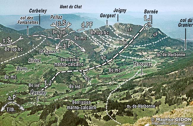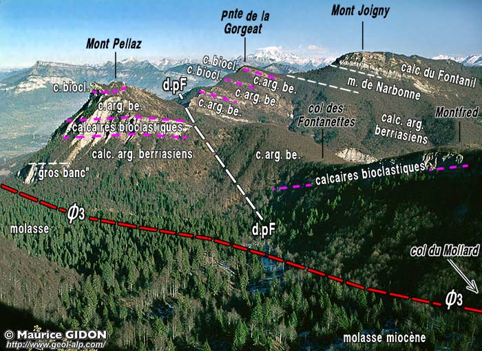 Au début des années 1950 les recherches de Paul Gidon dans le chaînon du Joigny, lui montrèrent l'existence de répétitions, finalement analogues à celles du Nivolet. En effet des niveaux calcaires plus ou moins bioclastiques, du type de ceux connus désormais dans le Berriasien de la partie inférieure de la coupe du Nivolet, y alternent avec des marnes (mais le plus souvent les faciès y sont globalement moins bioclastiques, de sorte que l'analogie lui échappa).